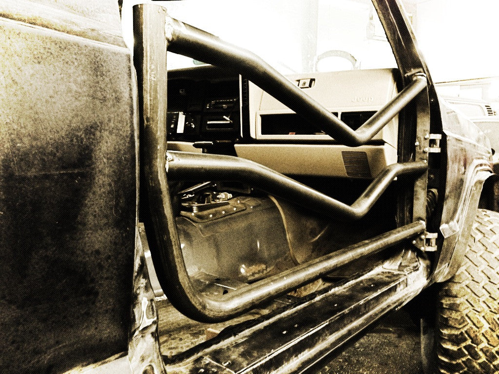 WARNING: On a vehicle with a unibody removing the stock doors can make the whole vehicle more flexible. Unless the unibody is strengthened or a roll cage is added the XJ may bend in half.